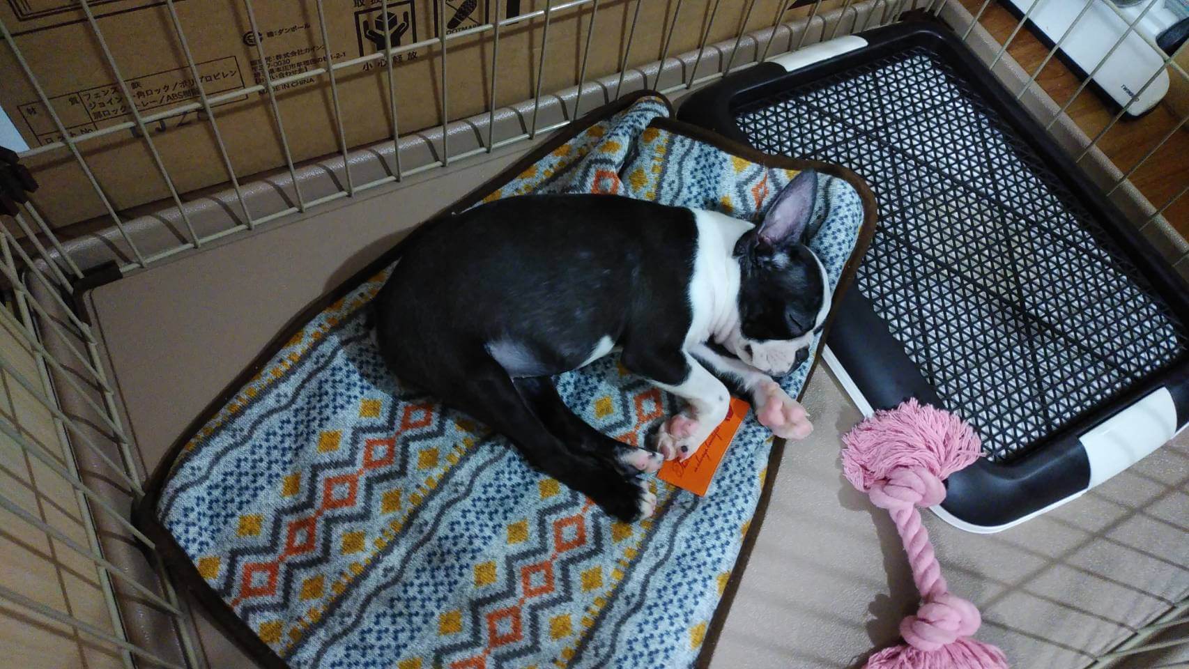 ボストンテリアの虎鉄です(1) ボストンテリア 2020.09.15 お迎え初日。かわいい寝顔 我が家の暴れん坊、ボストンテリアの虎鉄です。2019年の12月に我が家にやってきました。当時、3ヶ月ちょっとでやってきました。体重2.6kg小さかったなぁ・・・。今では8kgくらいまで元気に成長しました。