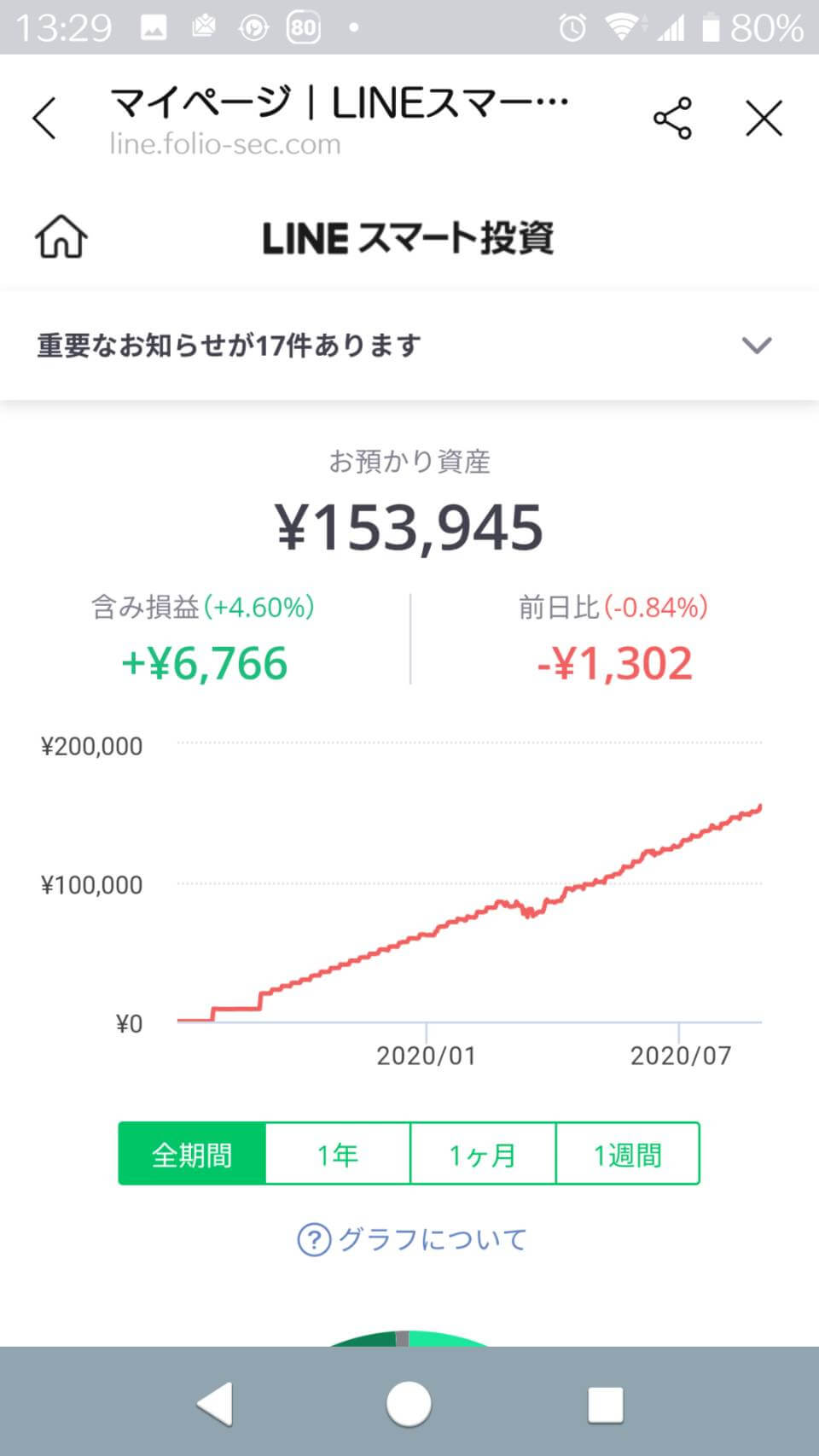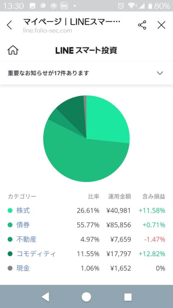 LINEスマート投資2020/08/28 LINEスマート投資 2020.08.282020.09.10 2020/08/28LINEスマート投資の結果です。 本日の結果。 今日はマイナスになりました。債権を中心に分散投資されているので派手に落ち込むことはないですが、痛いものは痛いです・・・。まあ、見守るしかないですけど・・・。