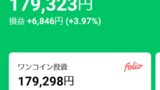 今日は大きく下げましたね。どんどん目減りしていってます。でもめげませんよ。まだ。マイナスになったらめげますけど。まあ、静観するしかないんですけど(笑)